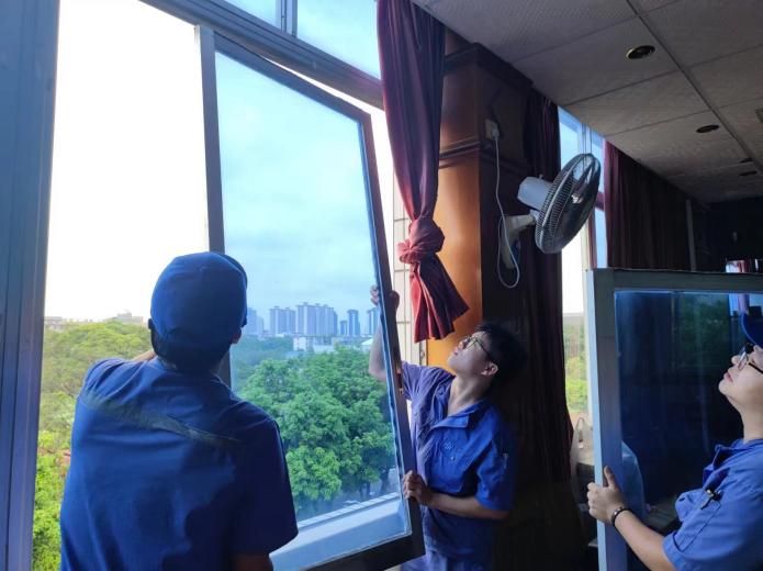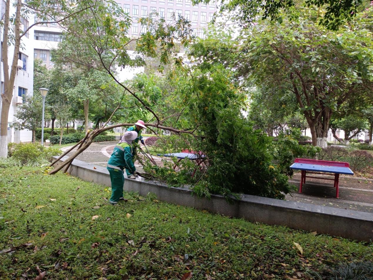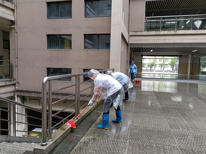 1.积极应对持续的台风大雨等强对流天气,学生公寓工作人员对学生公寓各楼栋、围墙、电气设备、排水设施、枯树枝、学生公寓周边自然环境等进行全面排查,对发现的隐患和问题及时处理及汇报。