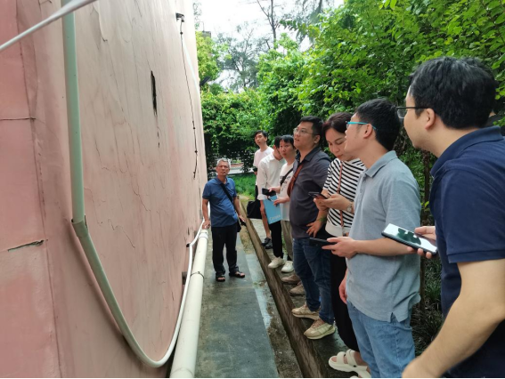 现场踏勘学生公寓天面、墙面漏水修缮项目和毕业生空房维修项目