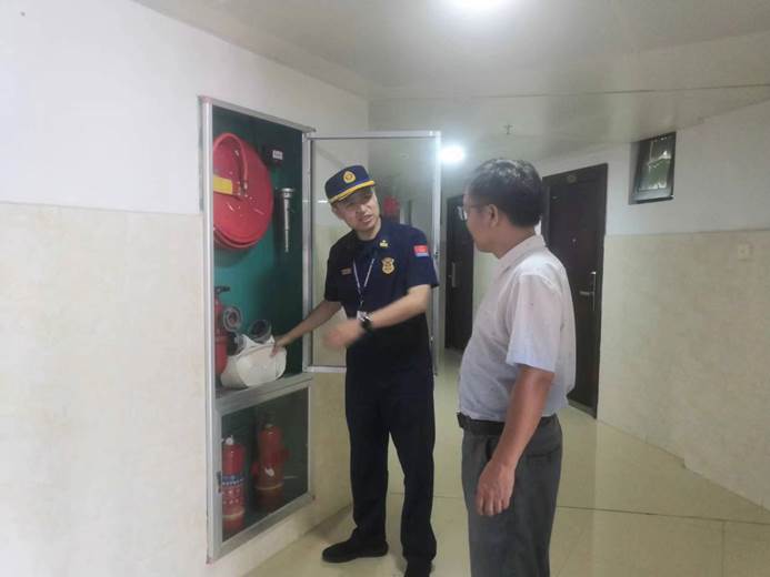 处领导陪同消防支部检查留学生大楼消防工作