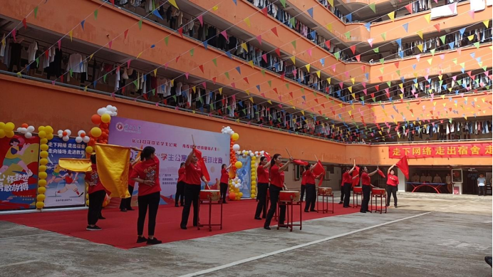 开幕式宿管阿姨带来的舞蹈《旗开得胜》