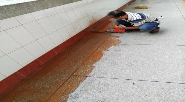 清洁商学院庭院内舞台污渍