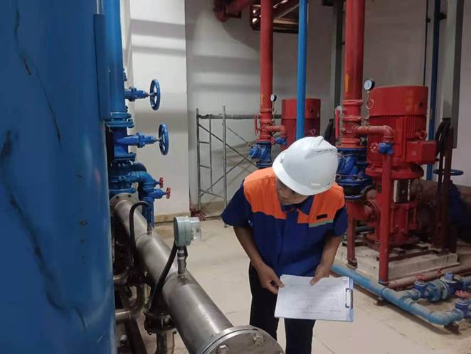 太阳集团tyc138余波处长带队到学生公寓东18栋水泵房指导工作