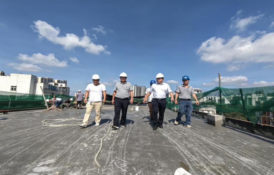 处领导带队检查学生公寓西28栋天面防水施工