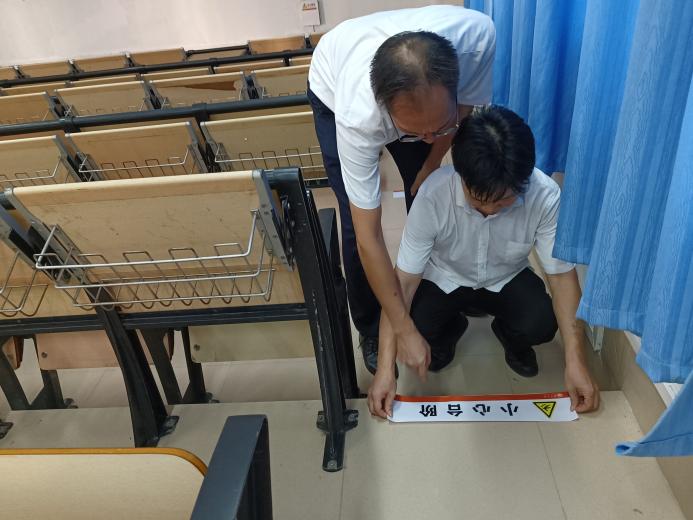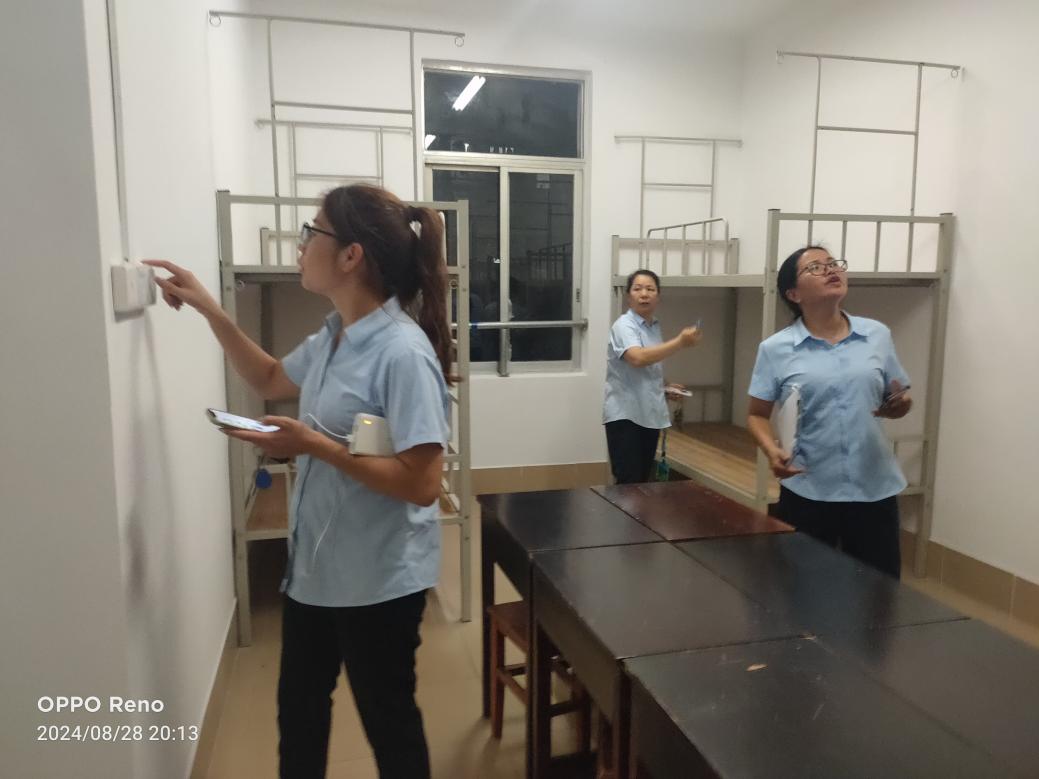 1.严壮锋副处长亲自带队,组织教学服务岗、设备维修岗及物业服务人员对公共教学楼进行了开学前全面细致的安全检查。