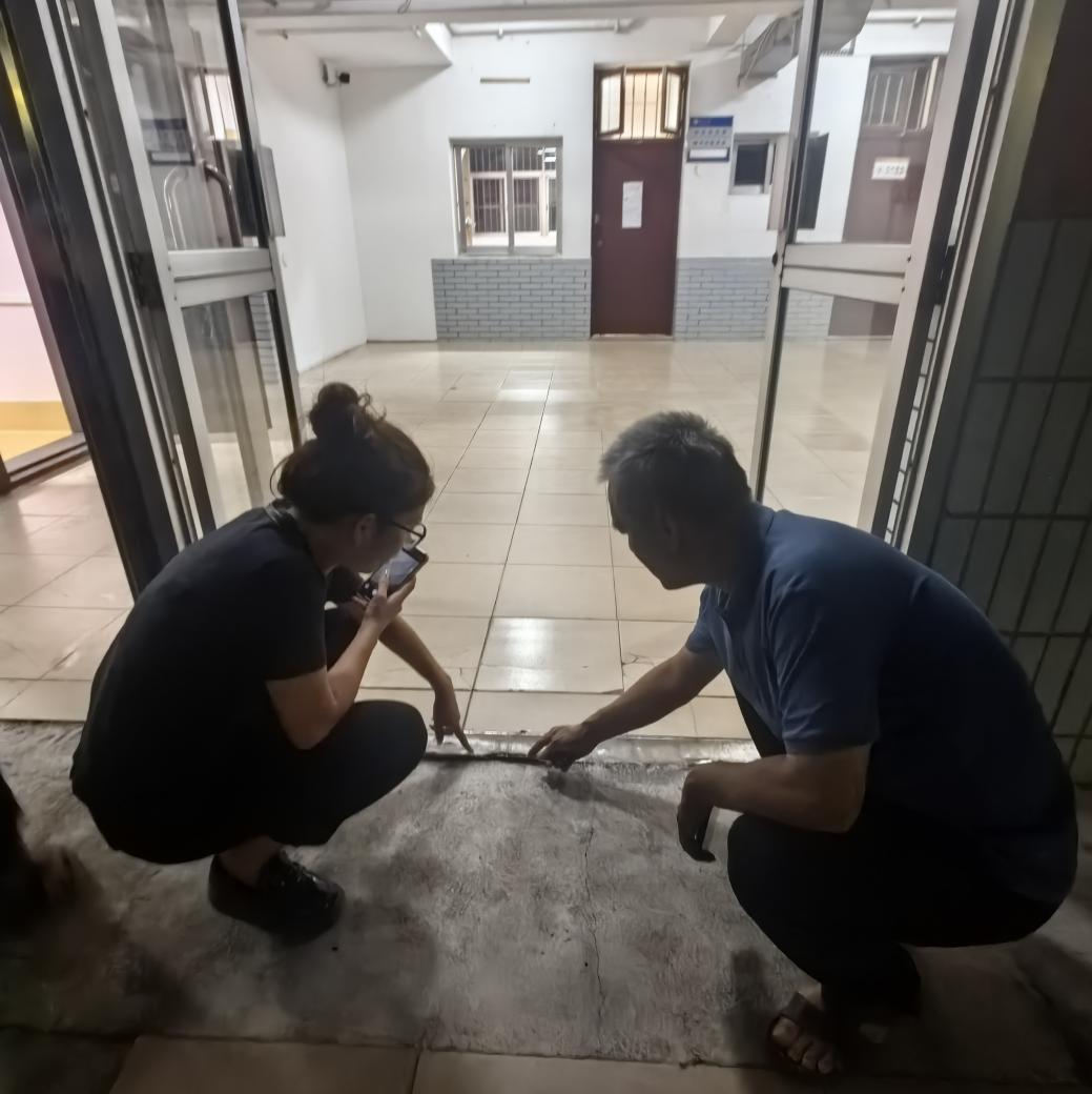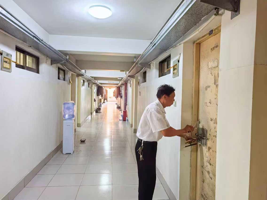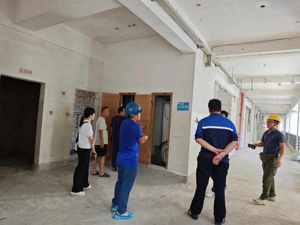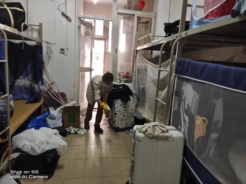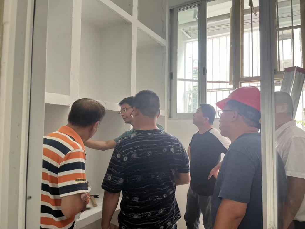 工作人员到东10-11栋查看毕业生腾空房施工进度