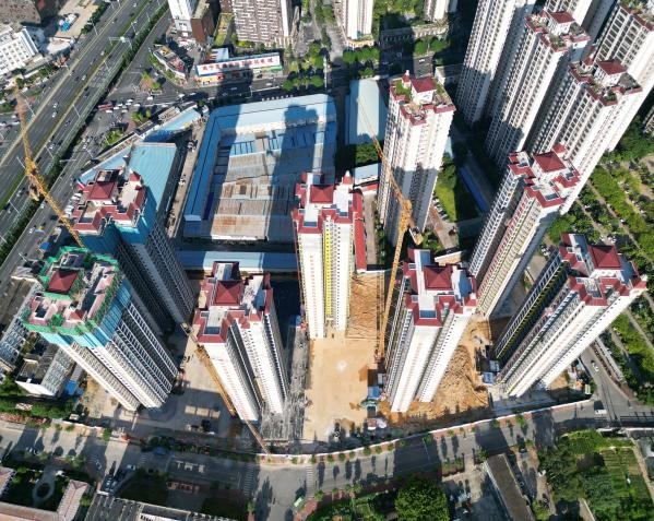 ③6#、7#楼:砌筑完成,内墙抹灰及顶棚素水泥浆完成1/2,楼梯间腻完成2/3层,窗框、阳台栏杆及烟道安装完成1/2正在施工斜屋面真石漆及室内抹灰、栏杆等。