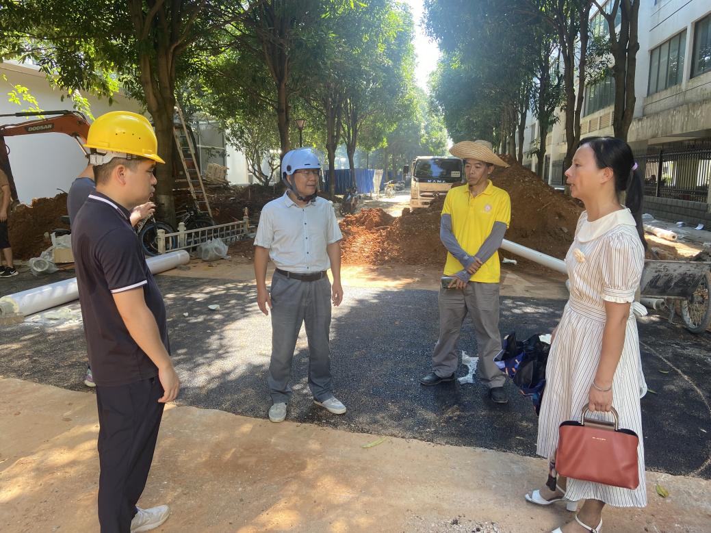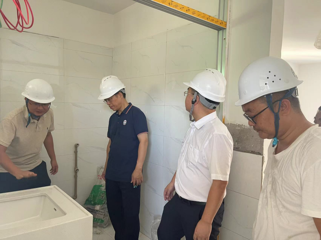 8月29日,校党委常委、副校长宁旭初带队检查学生公寓东31-35栋施工情况