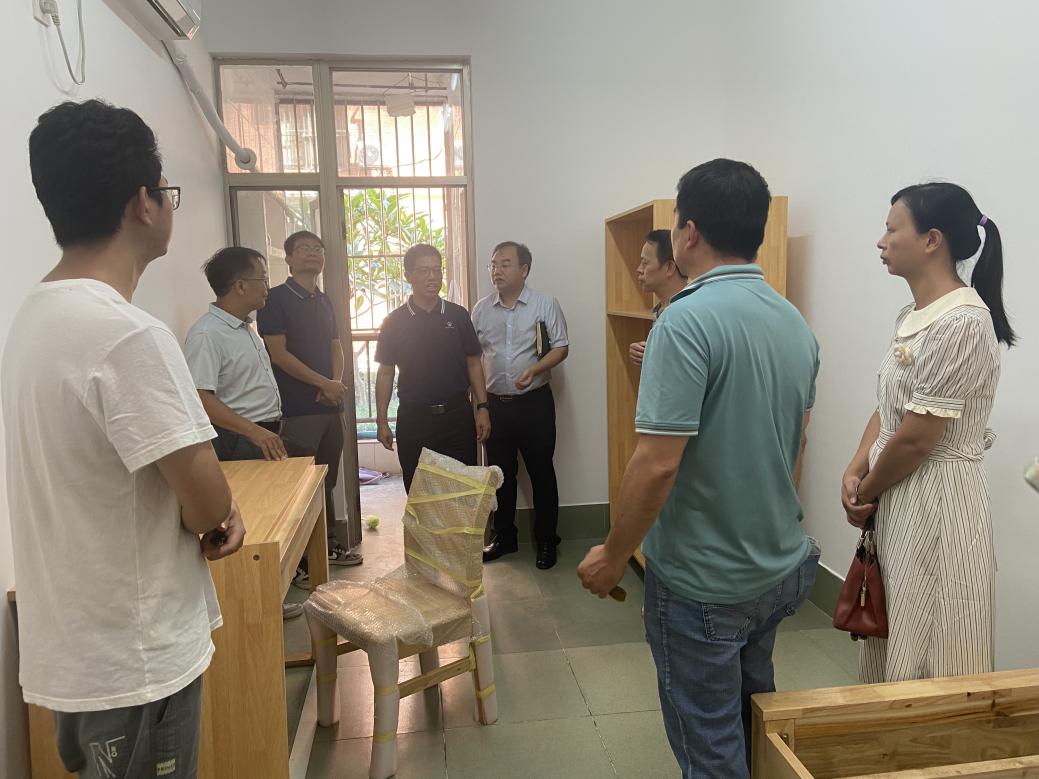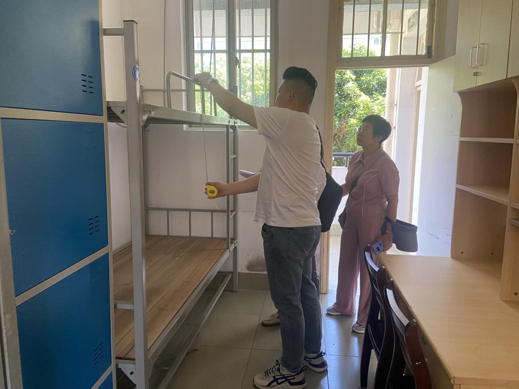 8月27日,校党委常委、副校长宁旭初带队到学生公寓东10栋查看博士房家具