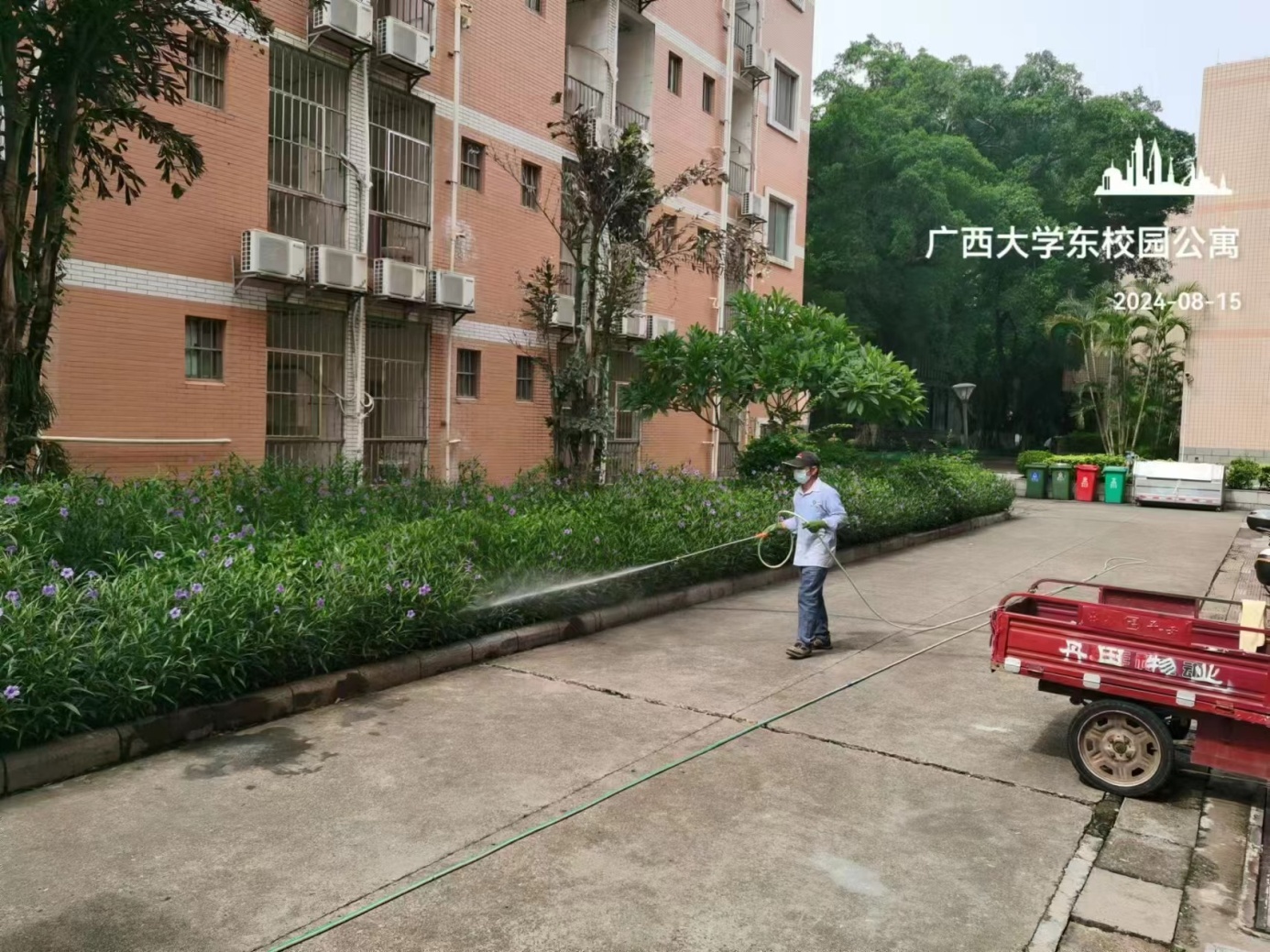 项目概况:学生公寓西28栋共有196间学生宿舍, 196个博士生床位,计划安排2024届博士生新生入住。要求宿舍地面铺设瓷砖,卫生间底部及墙面做防水处理,粉刷室内外墙漆,维修天面防水,调整优化宿舍电路及网络线路等,计划总投资443.78万元。于2024年7月22日开工建设,预计2024年8月竣工并交付使用。该项目由厦门东翔工程设计有限公司设计,广西金州建设有限公司承建,广西大通建设监理咨询管理有限公司监理。