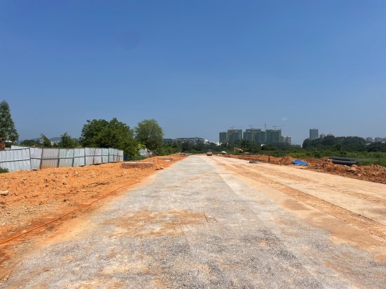 规划道路级配碎石施工,挡土墙淤泥段片石挤淤完成100%,挡土墙施工完成30m。
