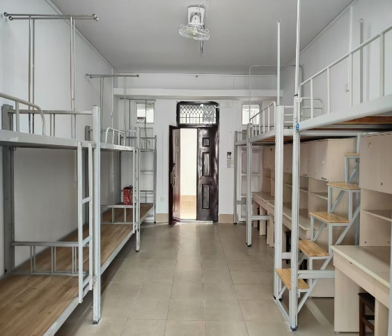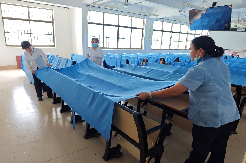 ⑤调整搬迁898套铁架床,170套蓝色铁皮组合床、649套组合书桌、1015张凳子等,显著改善学生的住宿条件。