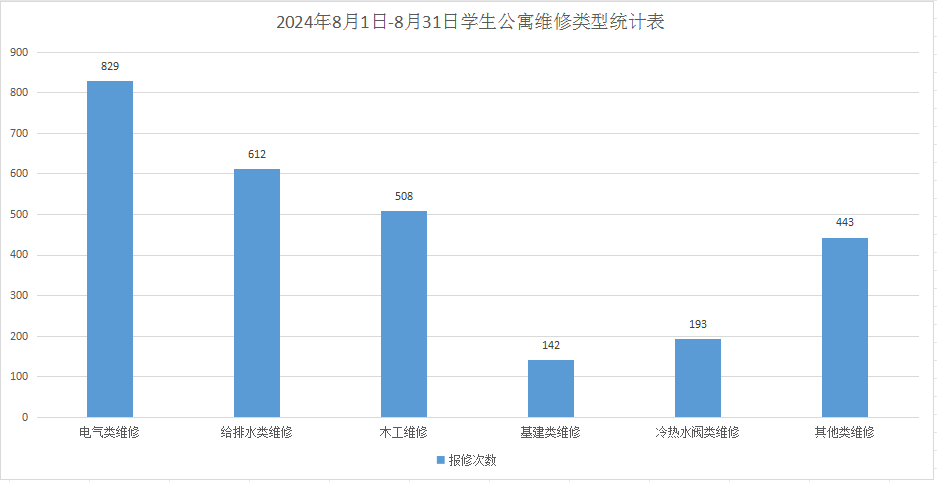 3.本月公共楼宇小型维修共接单813单,其中电类368单,给水类42单,门窗类69单,排水类137单,疏通类62单,房屋本体类58单,桌椅类51单,其他类26单,完成756单。