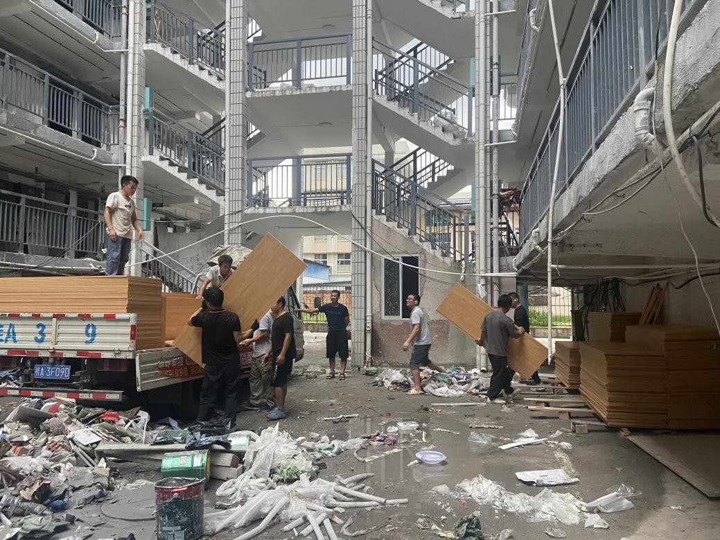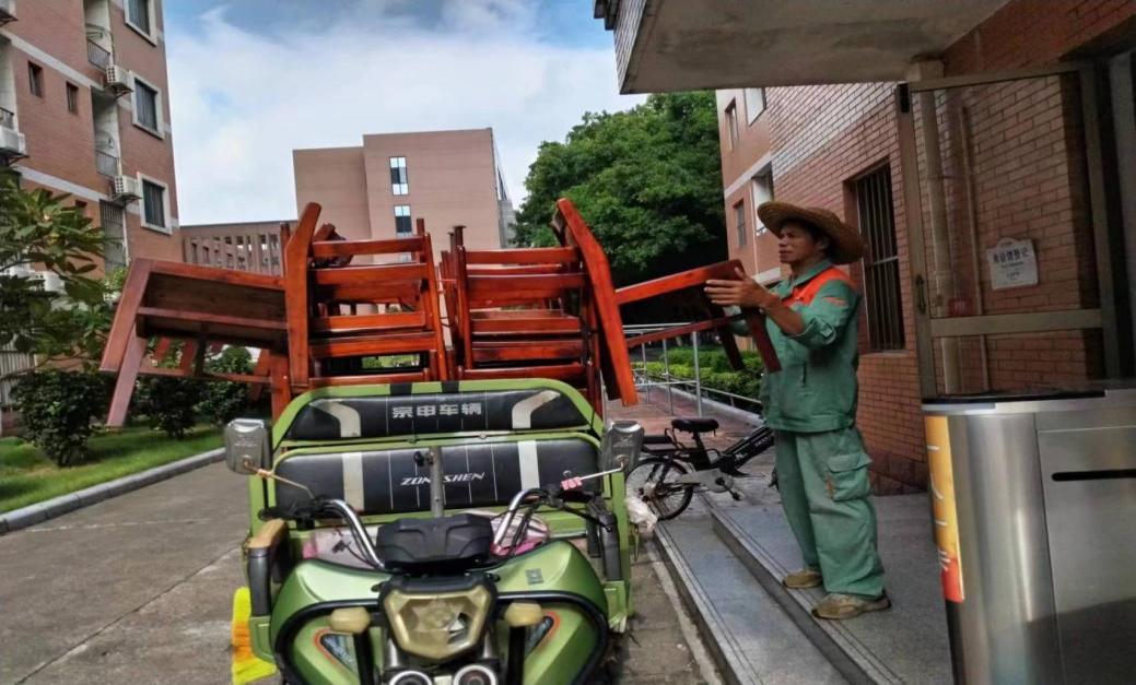 学生公寓西28栋家具装卸现场