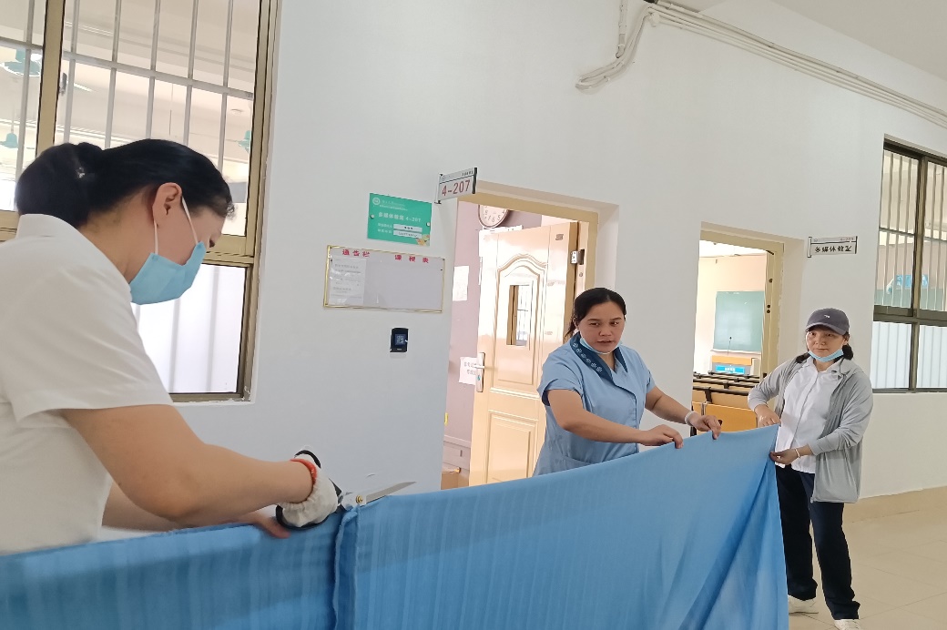 3.裁剪和清洗十五教、十六教窗帘。