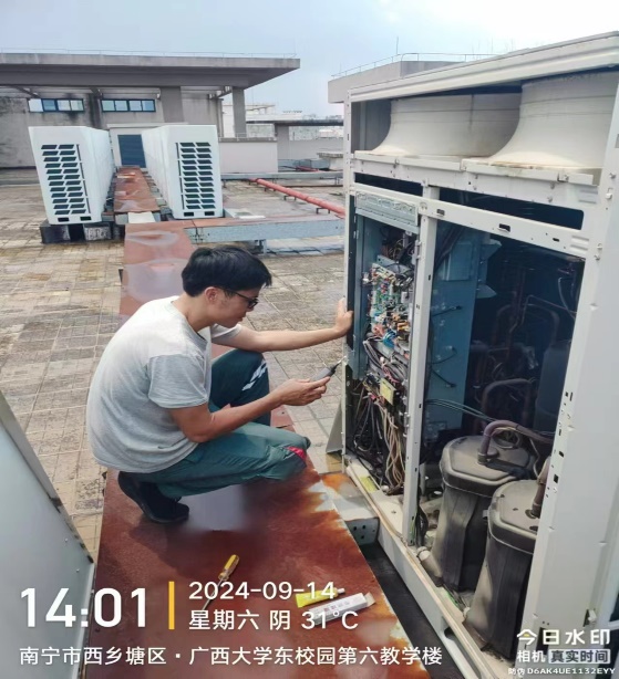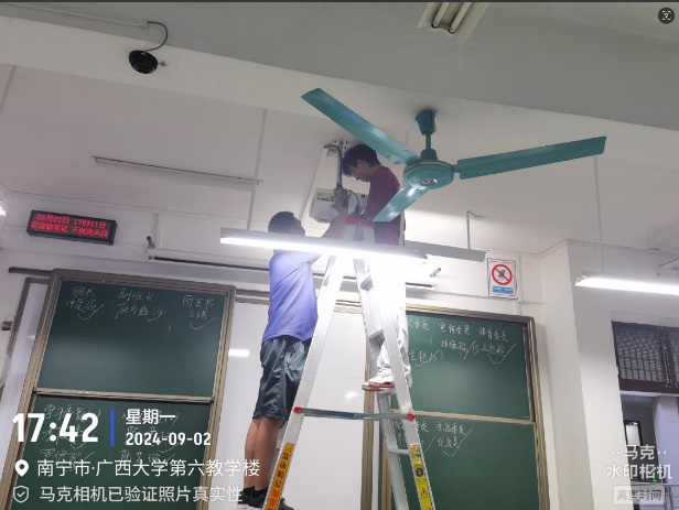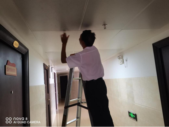 项目概况:学生公寓东31-35栋(原行健3-7号楼),项目投资2462.50万元,修缮面积77905平方米,共2104间宿舍,8400个床位。主要修缮内容:屋面部分防水、室内修补粉刷、部分卫生间翻修、更换阳台护栏、更换入户门及防火门、更换照明灯具、铺设一楼部分地板砖、更换部分空调机外架等。于2024年7月11日开工建设,合同工期50天;但由于施工单位违约,不按合同履行承诺,合同工期满后还有大量施工内容未完工,迫于新生开学的压力,校领导现场督战,8月31日紧急抢出所有室内修缮任务,基本达到入住条,后续继续整改完善。本工程由中外建华诚工程技术集团有限公司设计,中国建筑第六工程局有限公司承建,广西磊鑫建设有限公司监理。