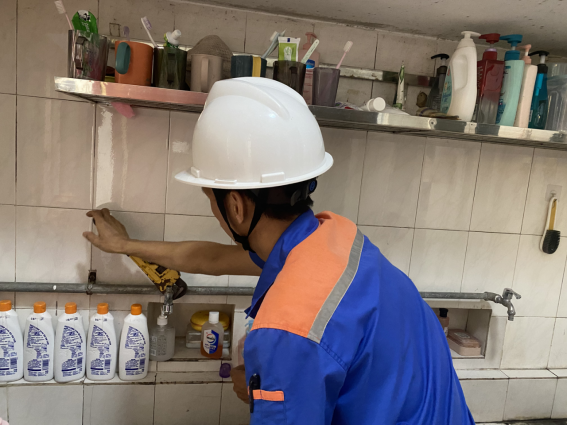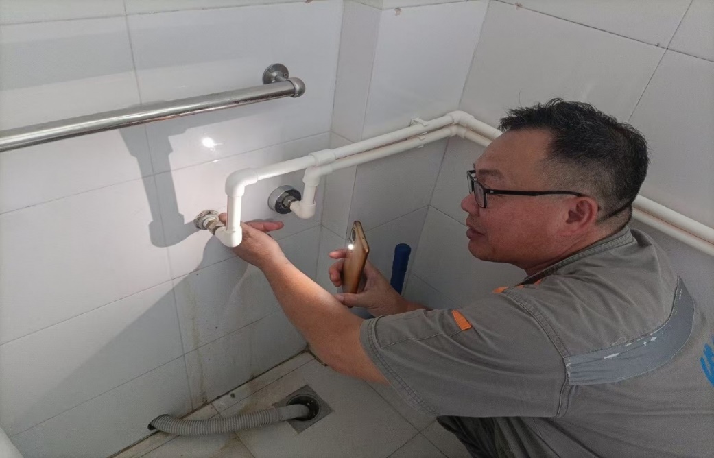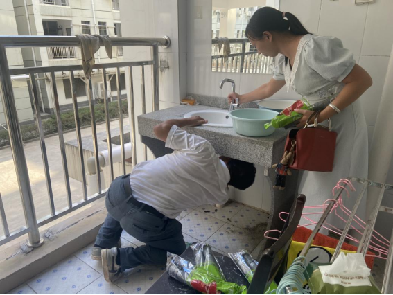 处领导到东31-35栋检查洗漱台加固及排水工作