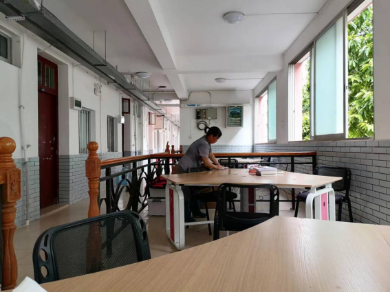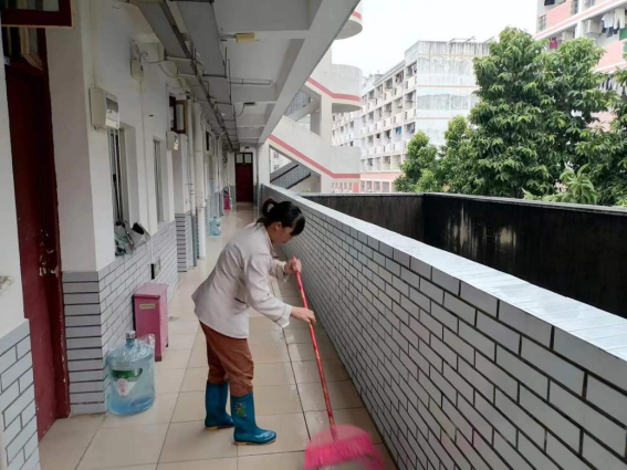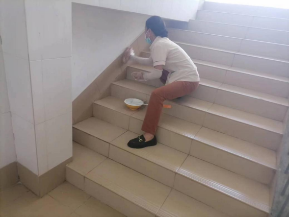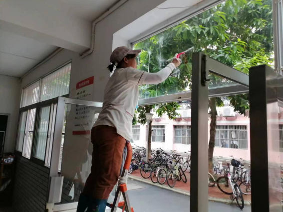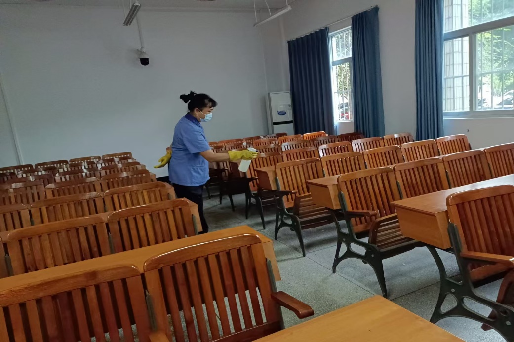 2.对公共教学楼宇的楼梯、走廊、门把手、课桌椅、水龙头、楼梯扶手、电梯间及按钮等高频接触表面进行重点杀菌消毒2836次。