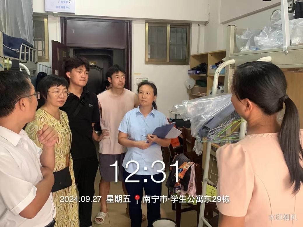 9月27日,处领导带队现场探讨学生公寓劳动育人及文化建设工作