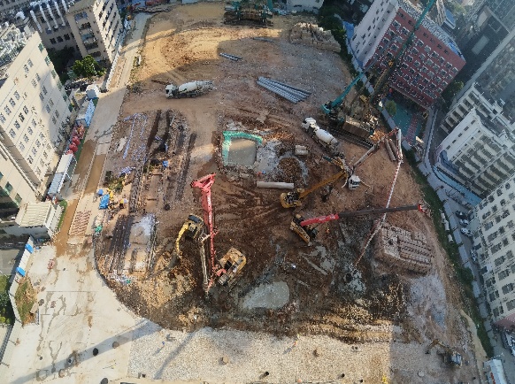 (2)工程桩施工成桩220根,第二台中掘法设备开始进场。