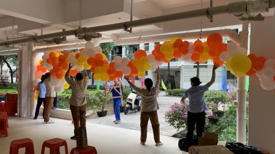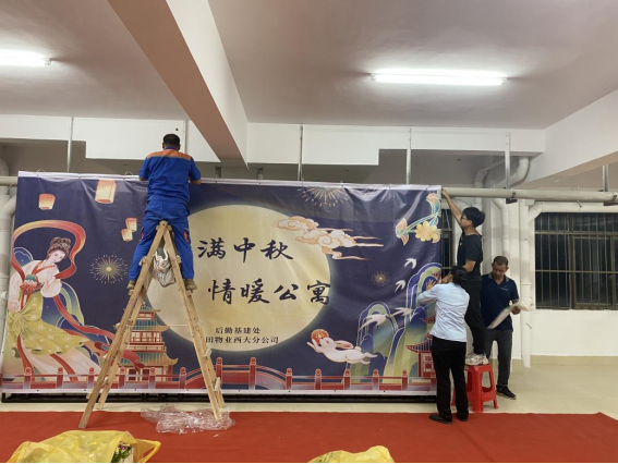 处领导指导“月满中秋·情暖公寓”场地布置工作