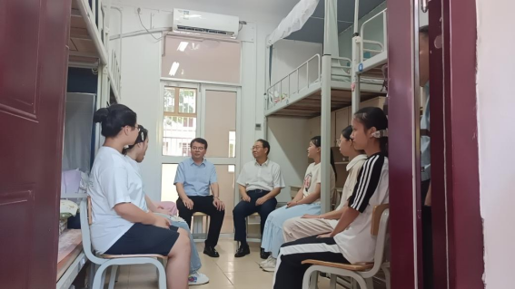 9月1日,党委书记李国忠带队到学生公寓西8栋走访新生