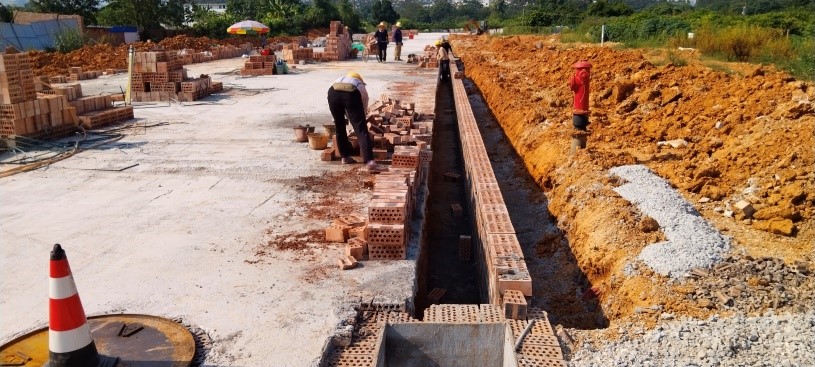 (2)林学院:基槽开挖,砖胎模砌筑。