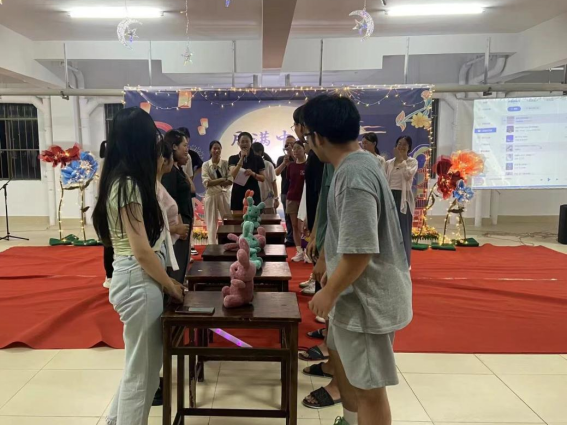 为了弘扬和传承中国传统文化,促进学生之间的交流活动,增进彼此的友谊,丰富大学生的精神文化生活,营造以公寓为家的文化氛围,9月14日晚,学生公寓以“月满中秋·情暖公寓”为主题,在学生公寓东32栋架空层休闲区举办庆中秋游园会。