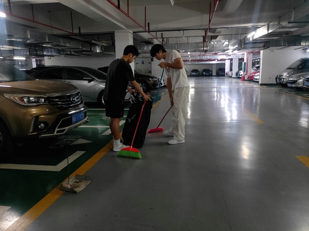 大学生在西校园网球中心地下停车场开展劳动教育实践课
