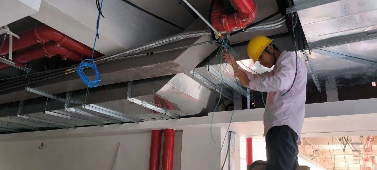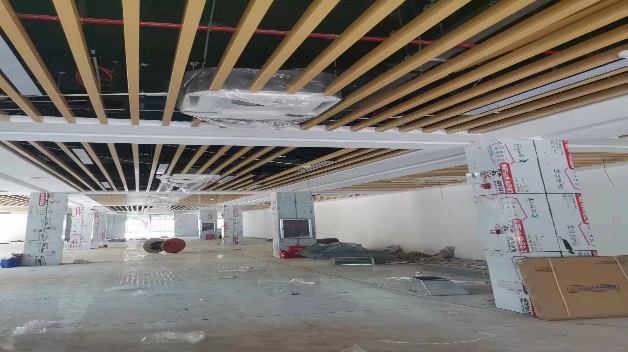 9月份项目进度:扩建部分空调已基本安装完毕,目前进行收尾及调试工作。消防水电完成80%。