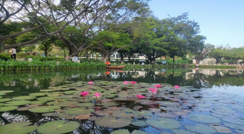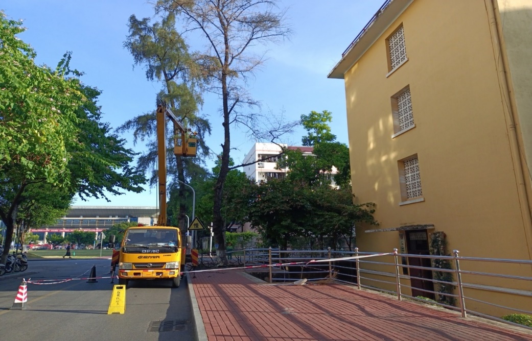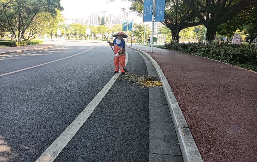 钓月台西侧道路10月份进度:完成钓月台西侧道路沥青面层浇筑,完成行道树种植、路灯架设、监控、路牌标志等架设。