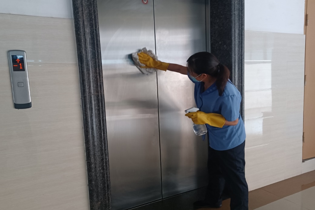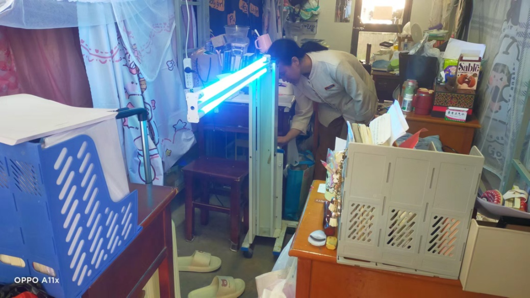 2.对公共教学楼宇的楼梯、走廊、门把手、课桌椅、水龙头、楼梯扶手、电梯间及按钮等高频接触表面进行重点杀菌消毒 2558 次。