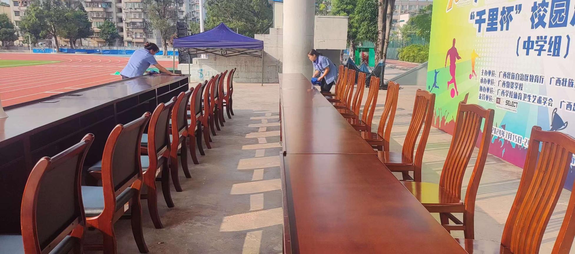 2.做好广西壮族自治区“千里杯”校园足球开幕前的环境布置和卫生清洁保障工作。