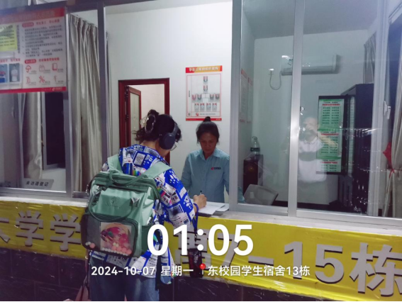 1.住宿管理与服务:办理外宿、调宿和休学、晚归登记等业务共25986次(其中外宿71人、调宿30人、新入住8人、综合业务509人、晚归登记25368人);走访宿舍403人次。