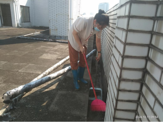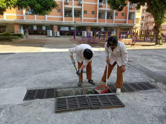 1.正常开展公共楼宇日常保洁服务工作。清理43栋公共楼宇排水暗沟内杂物及杂草266次,清理42栋楼宇天台的排水设施内淤泥及杂草175次;重点楼宇卫生保障35次,重要会议保障18次。