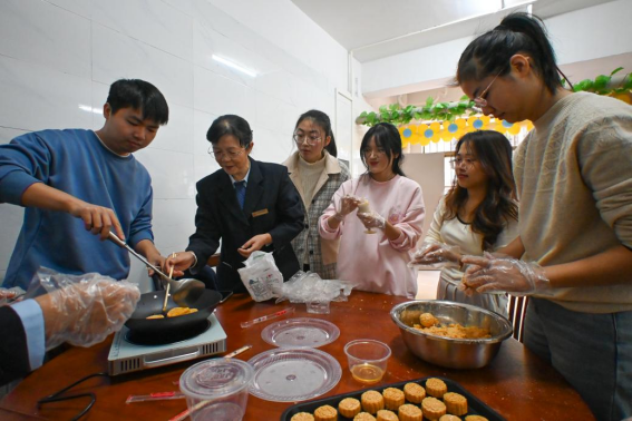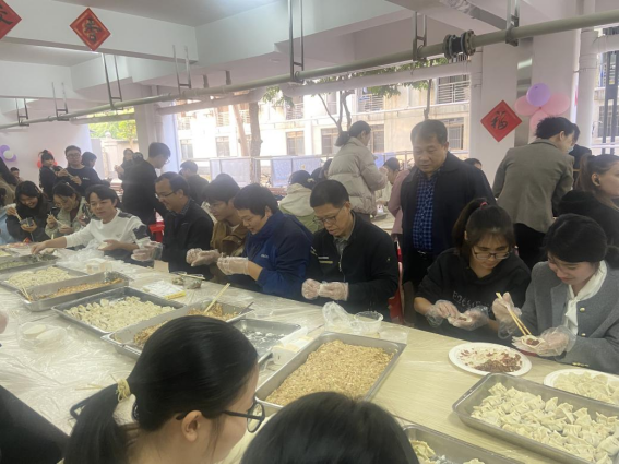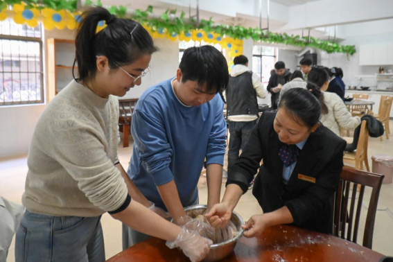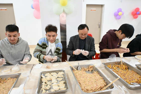 校党委常委、副校长宁旭初、太阳集团tyc138党委书记黄必春与同学们一起包饺子