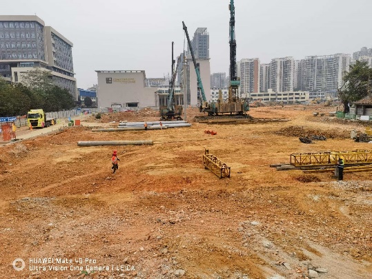 ④桩机、挖掘机、吊车等多台大型机械设备已进场,正在进行桩基础的工程桩施打工作,完成试桩8根、工程桩82根。