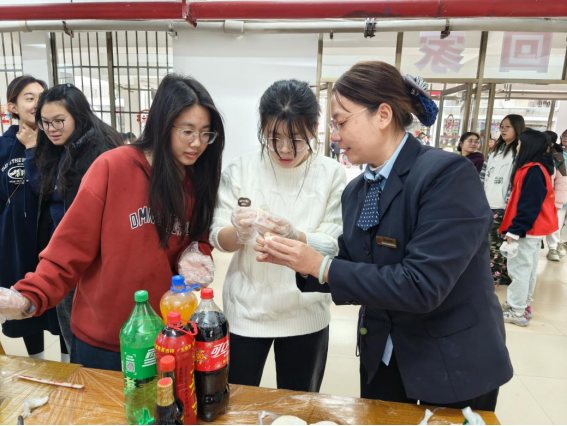 太阳集团tyc138党委副书记、处长余波与同学们一起包饺子