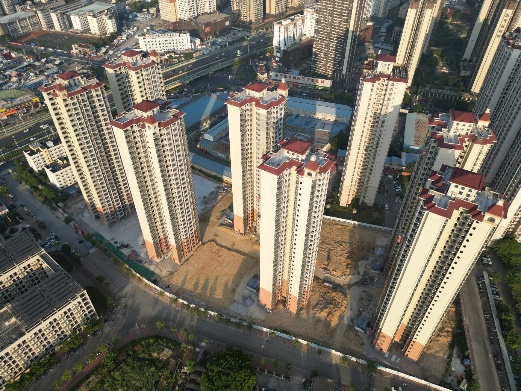 ③6#、7#楼:砌筑完成,内墙抹灰及顶棚素水泥浆已完成,楼梯间腻子已完成,窗框、阳台栏杆及烟道安装已完成,卫生间第一道防水及回填完成80%;外墙抹灰层和外墙涂料完成95%。楼梯间地面瓷砖完成40%;电梯厅地面砖和墙砖完成20%;窗户玻璃安装完成50%。