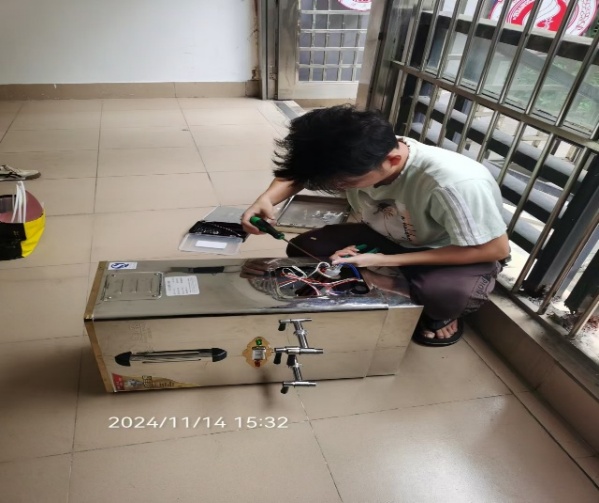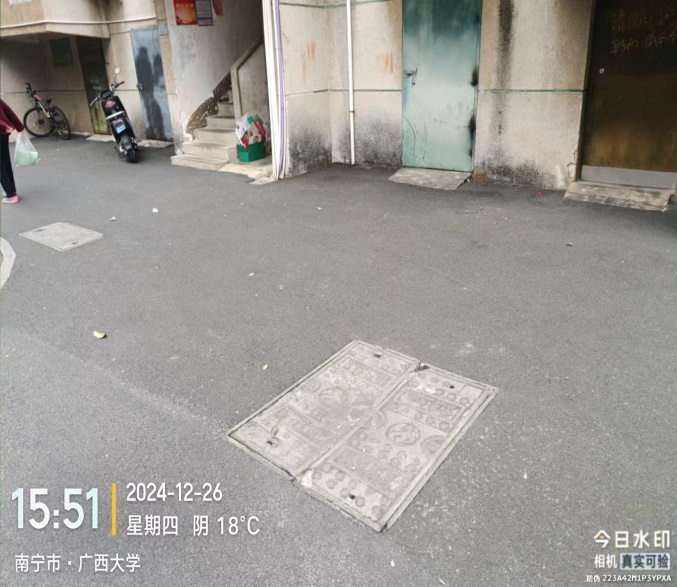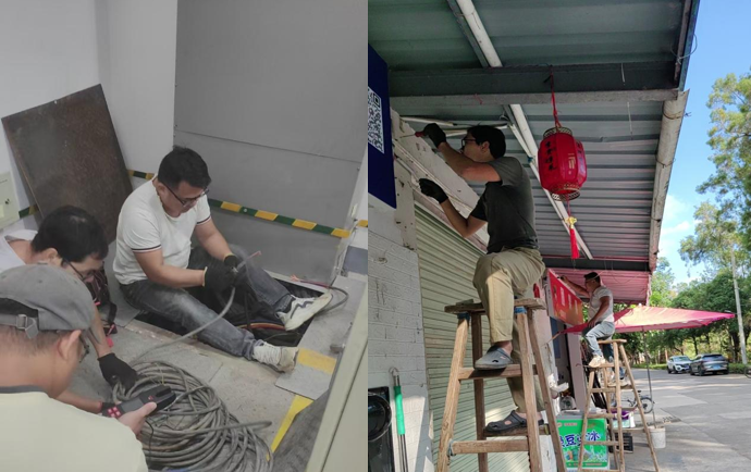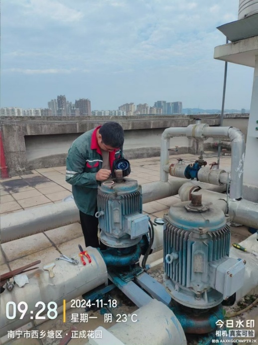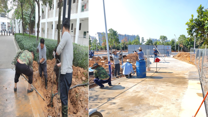 水电及公共区域维修客服人员24 小时接听报修电话,并及时安排维修师傅上门维修,除日常小额水电维修工作之外,水电维修员还定期对学校化粪池进行巡检,对堵塞或已满的化粪池及时进行疏通及抽吸;对住宅楼道排水管、电箱、公共区域照明灯及校内地面、人行道、路缘石、路灯、井盖、水沟盖板、健身器材等公共设施进行巡查,发现问题及时汇报及维修。