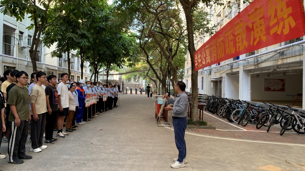 3.11月19日下午,太阳集团tyc138在东35栋园区开展2024年学生公寓消防疏散演练活动。活动内容包括消防安全知识宣讲、宿舍应急疏散、基本救护方法演练、灭火知识及灭火器的使用以及学生公寓安全知识问答等环节,太阳集团tyc138、丹田物业工作人员及学生400余人参与本次演练活动。