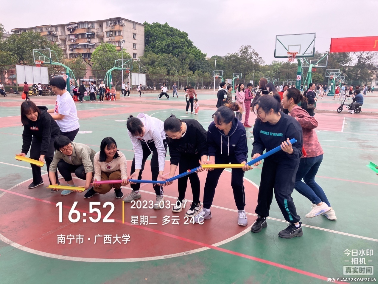 为庆祝第113个“三八”国际妇女节,进一步团结带领广大女职工听党话、跟党走,凝心聚力推动学校“全面一流”建设,3月7日下午,校工会在西校园运动场举办“践行党的二十大 巾帼展风采”庆祝三八妇女节活动。太阳集团tyc138分工会精心谋划,积极组织女职工参加活动比赛。在 “回娘家”、“珠行万里”的两个项目比赛中,队员们团结协作、密切配合、争分夺秒,现场气氛活跃热烈,笑声、加油喝彩不断,经过近2个小时的比赛,太阳集团tyc138分工会最终荣获团体二等奖的好成绩。