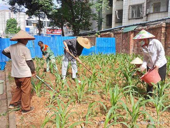 6月21日,学生公寓邀请各地块负责人到南区玉米园进行除草与施肥工作,玉米在大家的照顾下茁壮成长。