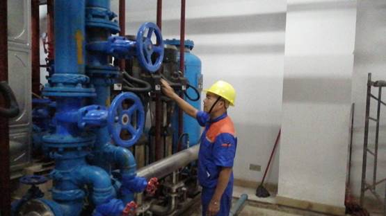 工作人员对水泵房进行日常巡检