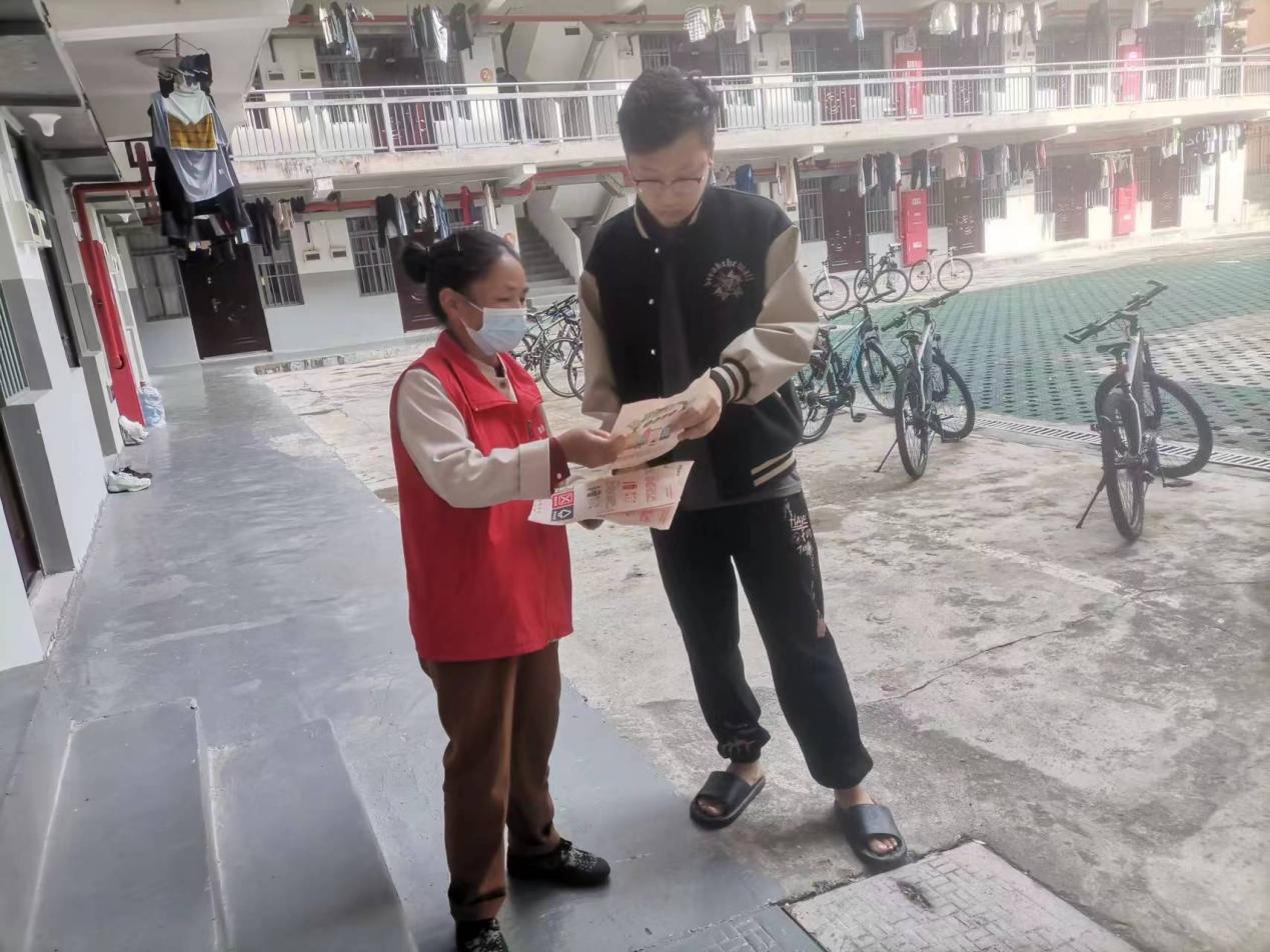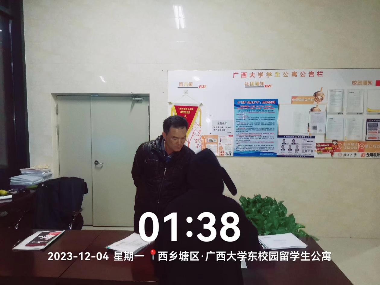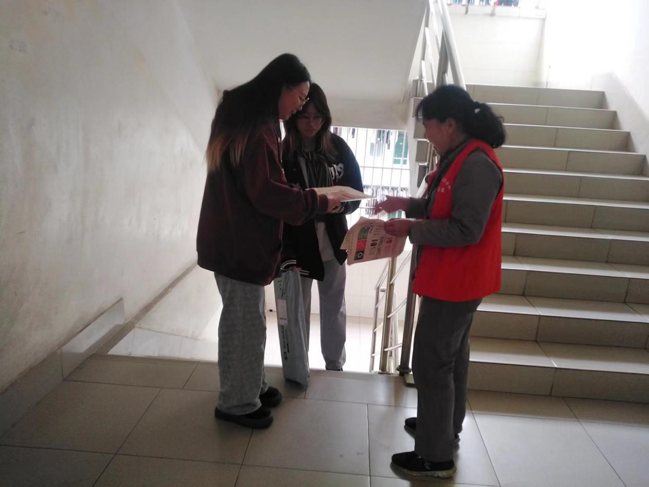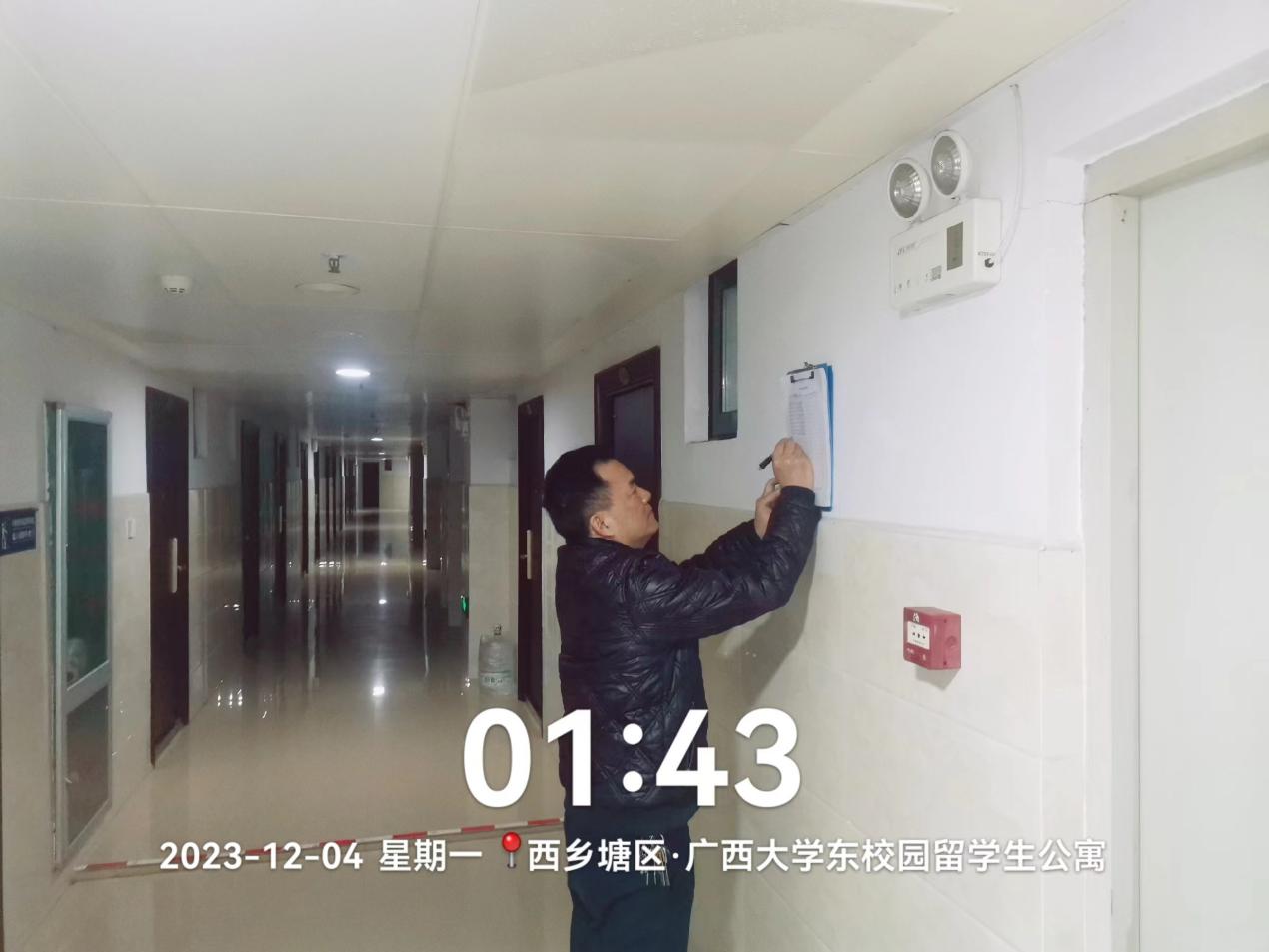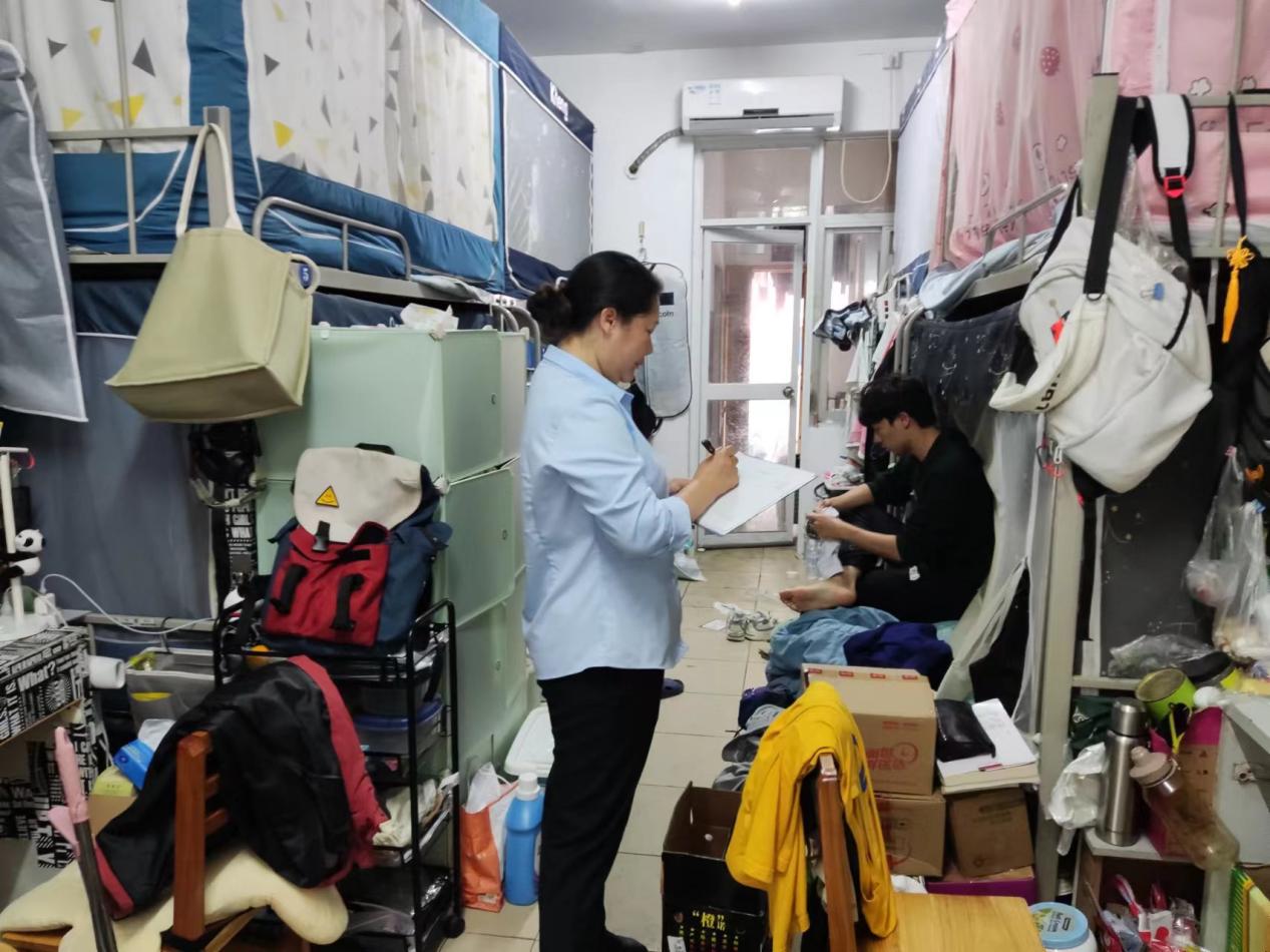 工作人员进行学生公寓安全隐患排查工作