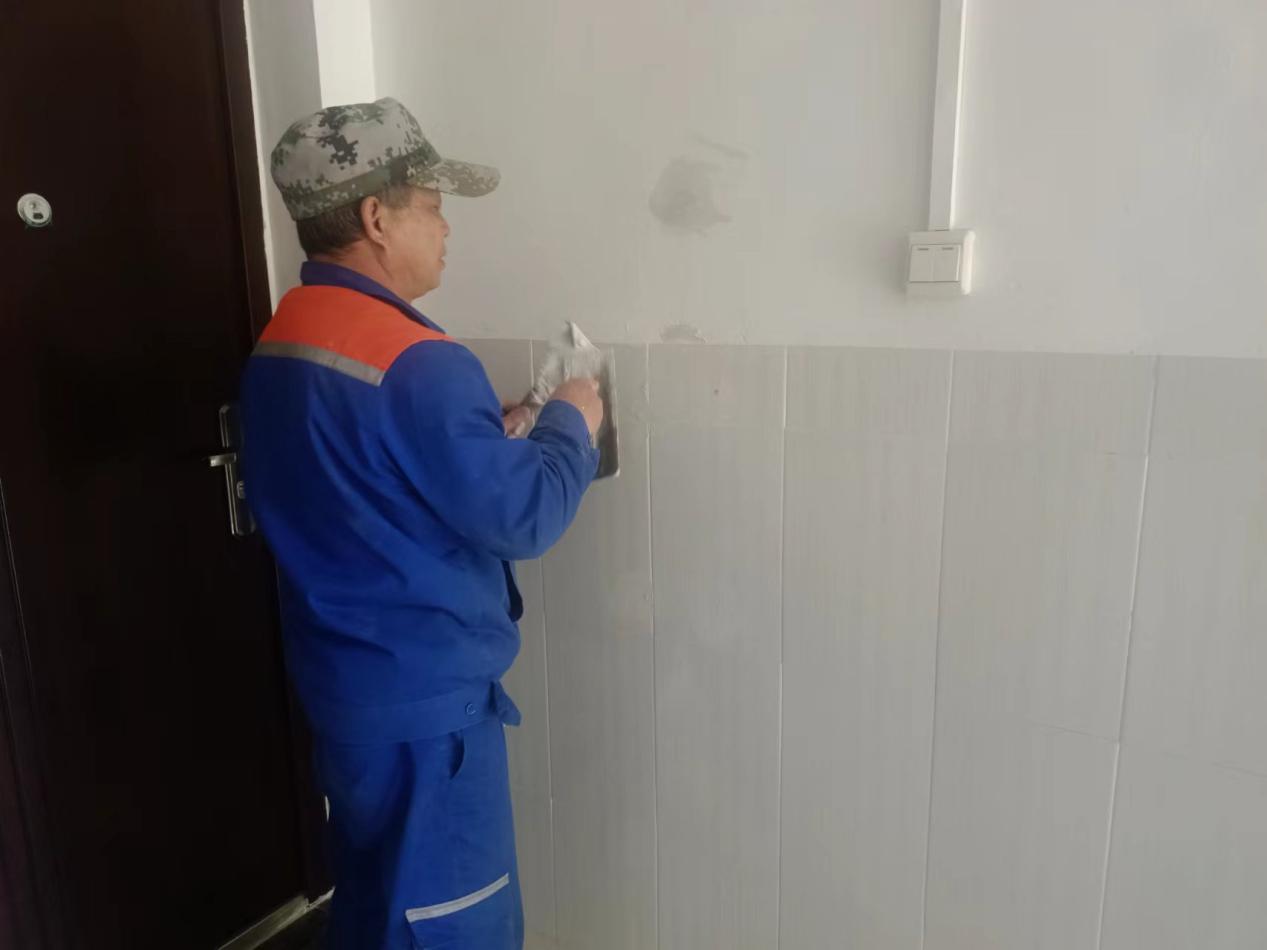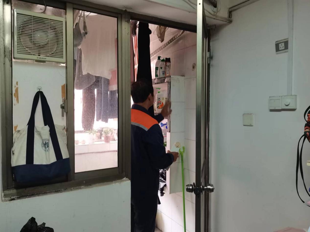 工作人员维修西22栋阳台壁柜