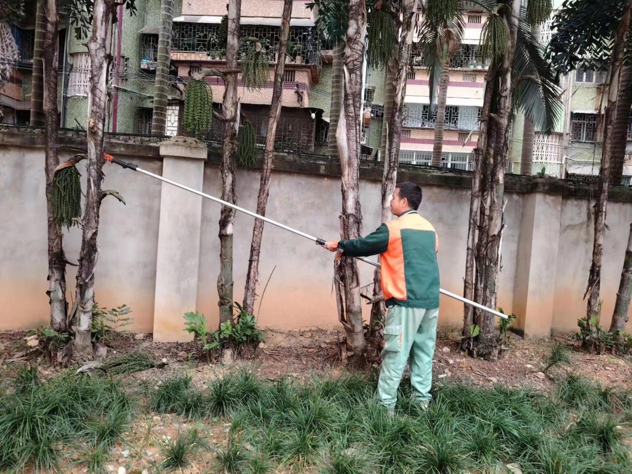绿化人员在东4园区打理凤尾葵