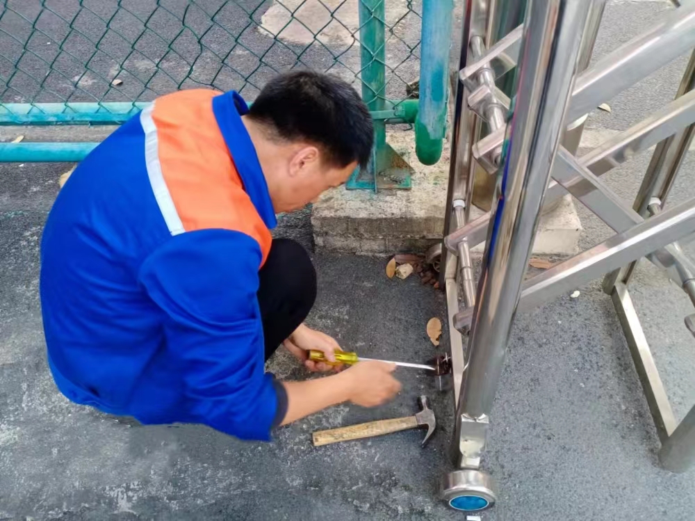 工作人员维修西7栋岗亭门禁