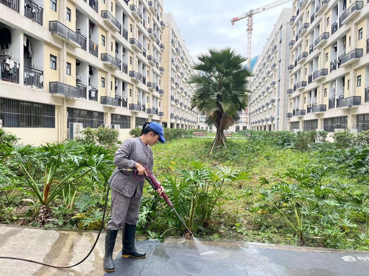 持续做好学生公寓日常保洁和公寓园区绿植养护工作。进行日常保洁约19万平方米,清理明沟水沟长度约3270米;清洗东27-30栋路面;本周绿化重点为园区绿化消杀一次、西5园区绿化修剪工作。
