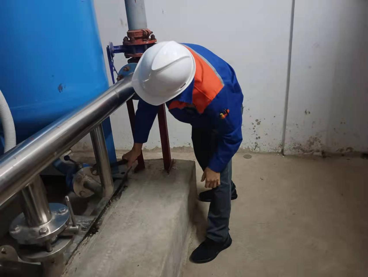工作人员对水泵房进行日常巡检