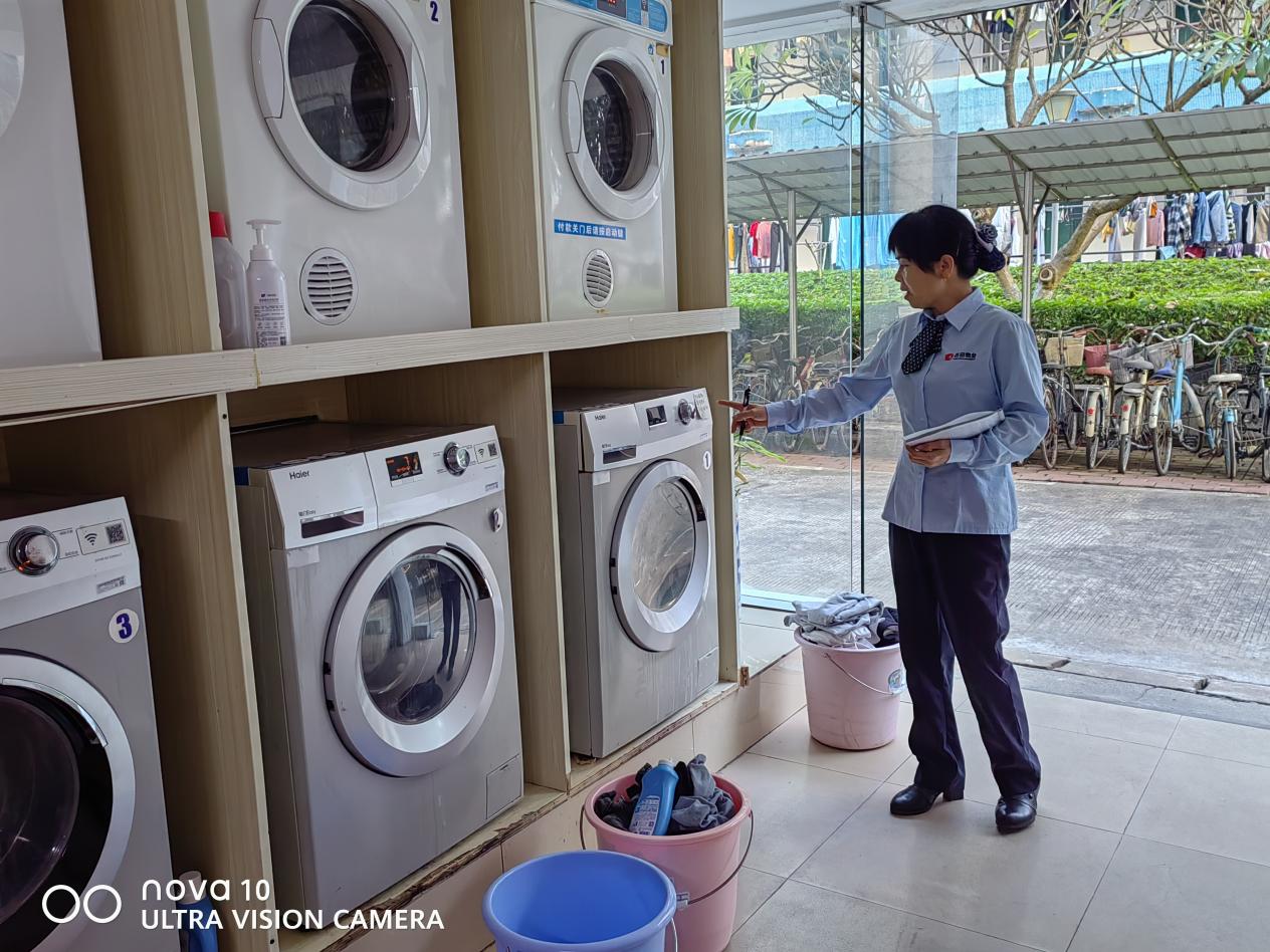 工作人员巡查园区洗衣房情况